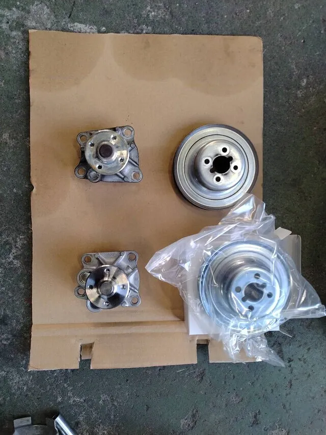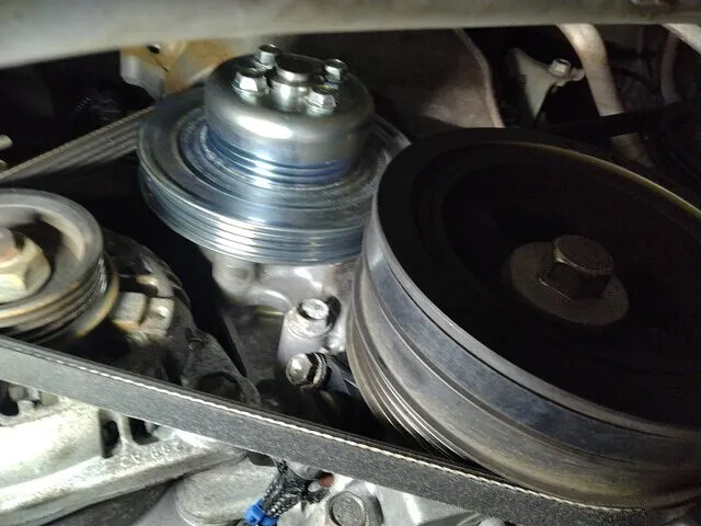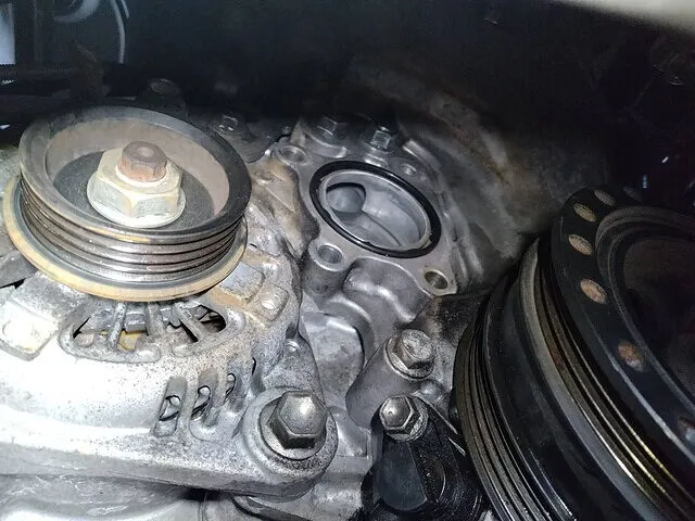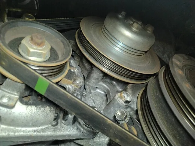 エンジンルームを開けると、普段はあまり目にしないベルトやプーリーが見えてきます。