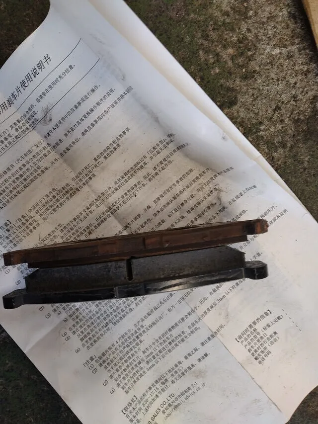 走行距離67000㎞の車両です。お客様の御用命ではありませんでしたが、走行中にブレーキペダルを踏むとキーキー音が気になりました。見てみると、前側のブレーキパッドのあたり面が1.5ミリしか残っていませんでした。なかなか際どいタイミングで今回交換出来て一安心です。