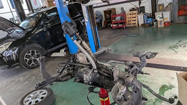 ステアリング廻りの修理はサブフレーム事車両から降ろしての作業になります